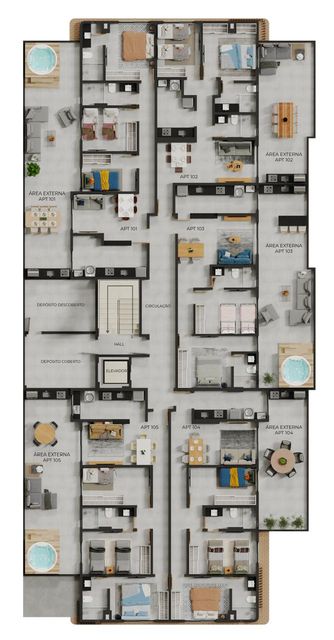 São 32 apartamentos de 2 e 3 quartos. garagem , academia, pet play, area de diversão para as crianças, piscina, salão de festa.