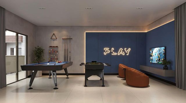 Academia, piscina, quadra esportiva, salão de festa, garagem.