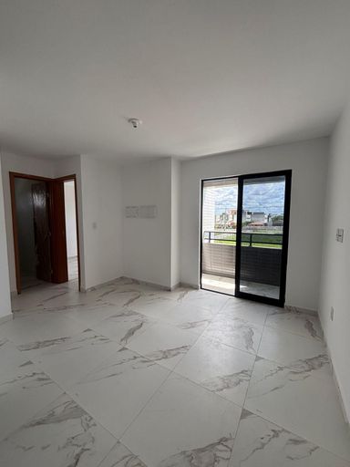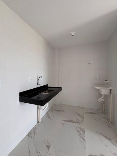 Apartamento com 2 quartos, sendo 1 suíte, sala para 2 ambientes, WC social, cozinha, área de serviço, varanda, 1 vaga de garagem.