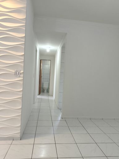 Apartamento com 2 quartos, sala para 2 ambientes, cozinha, área de serviço e vaga de garagem.